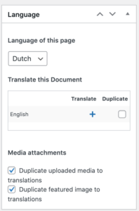 Stap 1: klik op het plusteken bij de gewenste taal rechts boven. Hiermee dupliceer je de pagina (zie afbeelding)