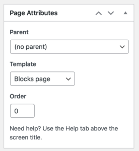 Zet in het dashboard (rechts) bij ‘Page Attributes’ de pagina op ‘Blocks page’ (ipv Default template’